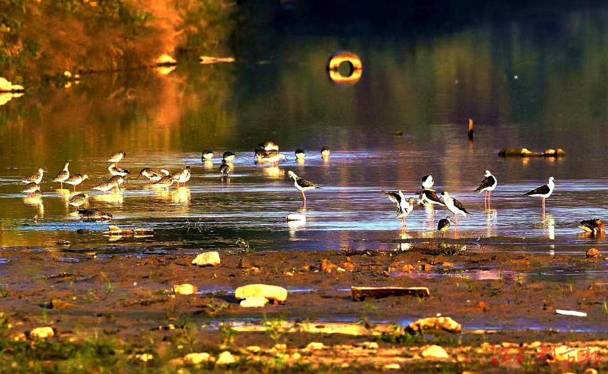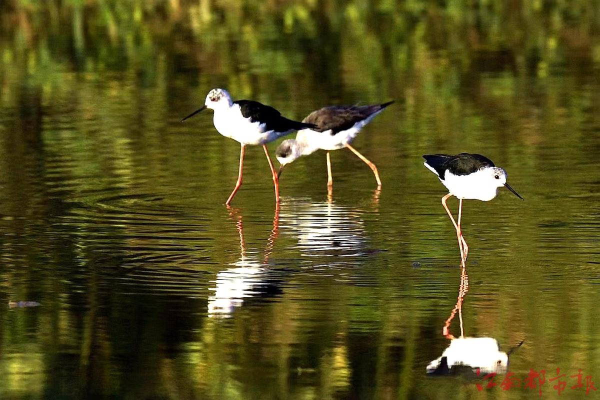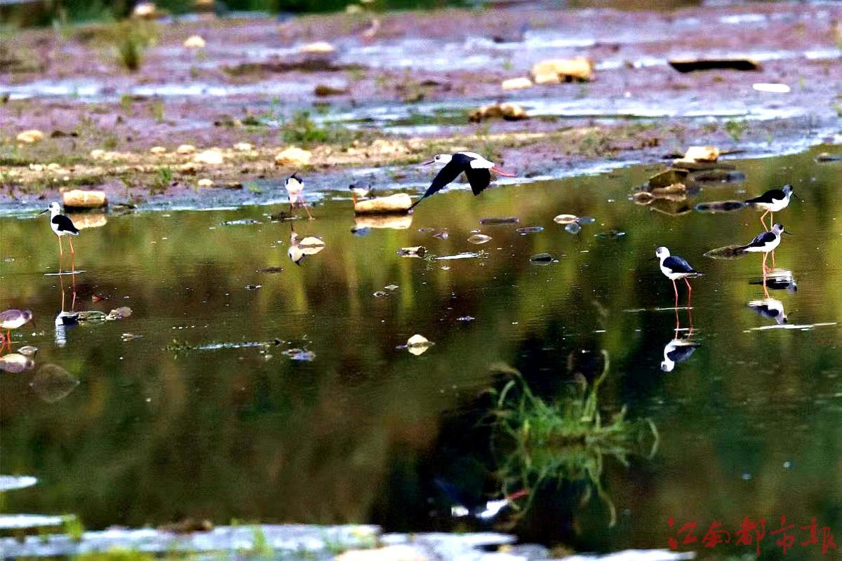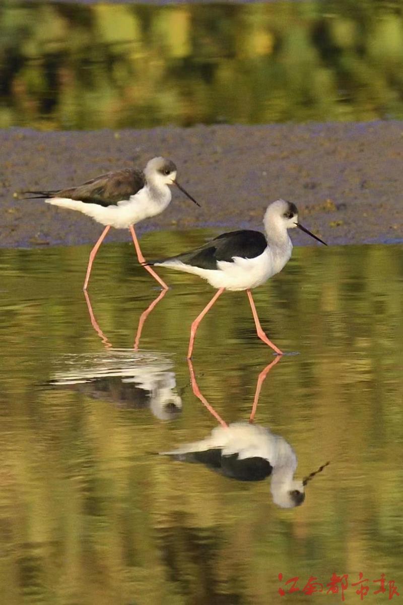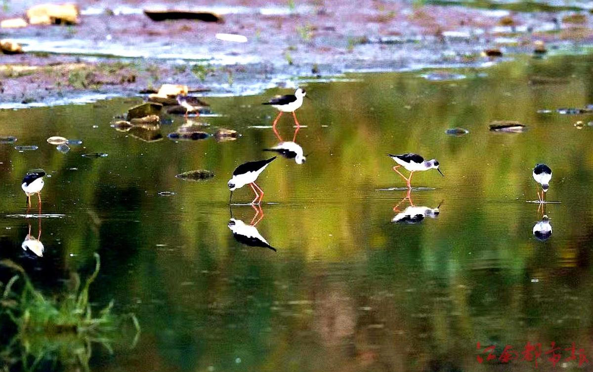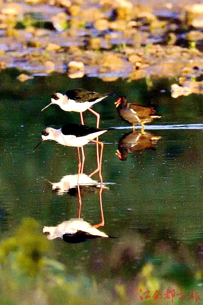 江南都市報(bào)訊 全媒體記者許南平攝影報(bào)道:1月3日,在鄱陽(yáng)湖核心保護(hù)區(qū)永修吳城,百余只有著“水鳥(niǎo)模特”和“紅腿娘子”之稱(chēng)的黑翅長(zhǎng)腳鷸在湖區(qū)覓食、飛翔、嬉戲,構(gòu)成一幅美麗和諧的生態(tài)畫(huà)卷。據(jù)省野生動(dòng)物保護(hù)協(xié)會(huì)志愿者、生態(tài)攝影師方克軍介紹,黑翅長(zhǎng)腳鷸都擁有一副好身材,它們擁有黑色的翅膀和長(zhǎng)長(zhǎng)的紅色細(xì)腿,黑白紅三色分明,身材高挑,無(wú)論是行走還是飛翔,姿態(tài)都很優(yōu)雅,它的嘴細(xì)長(zhǎng)而筆直,體白翅黑,對(duì)比分明。個(gè)頭不算太大,卻長(zhǎng)了一雙30多厘米長(zhǎng)的細(xì)腿,堪稱(chēng)鳥(niǎo)界“超模”,它們喜歡在淺水或沼澤地上活動(dòng),邊走邊在地面或水面啄食。黑翅長(zhǎng)腳鷸主要以軟體動(dòng)物、蝦、甲殼類(lèi)、環(huán)節(jié)動(dòng)物、昆蟲(chóng),以及小魚(yú)和蝌蚪等動(dòng)物為食。常單獨(dú)、成對(duì)或成小群棲息于開(kāi)闊平原草地中的湖泊、淺水塘和沼澤地帶。