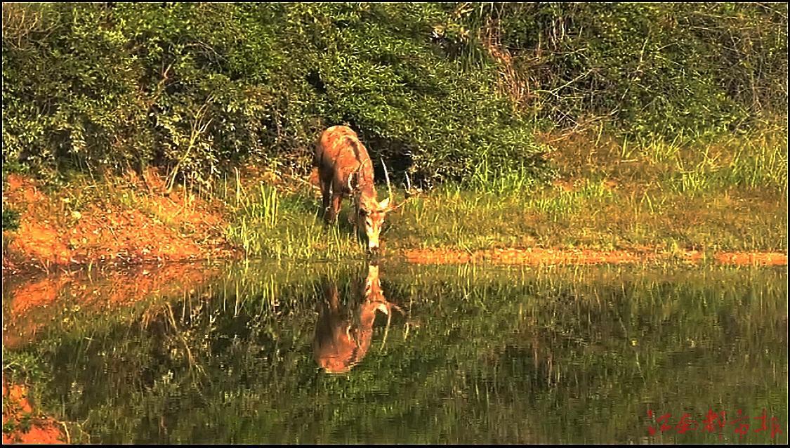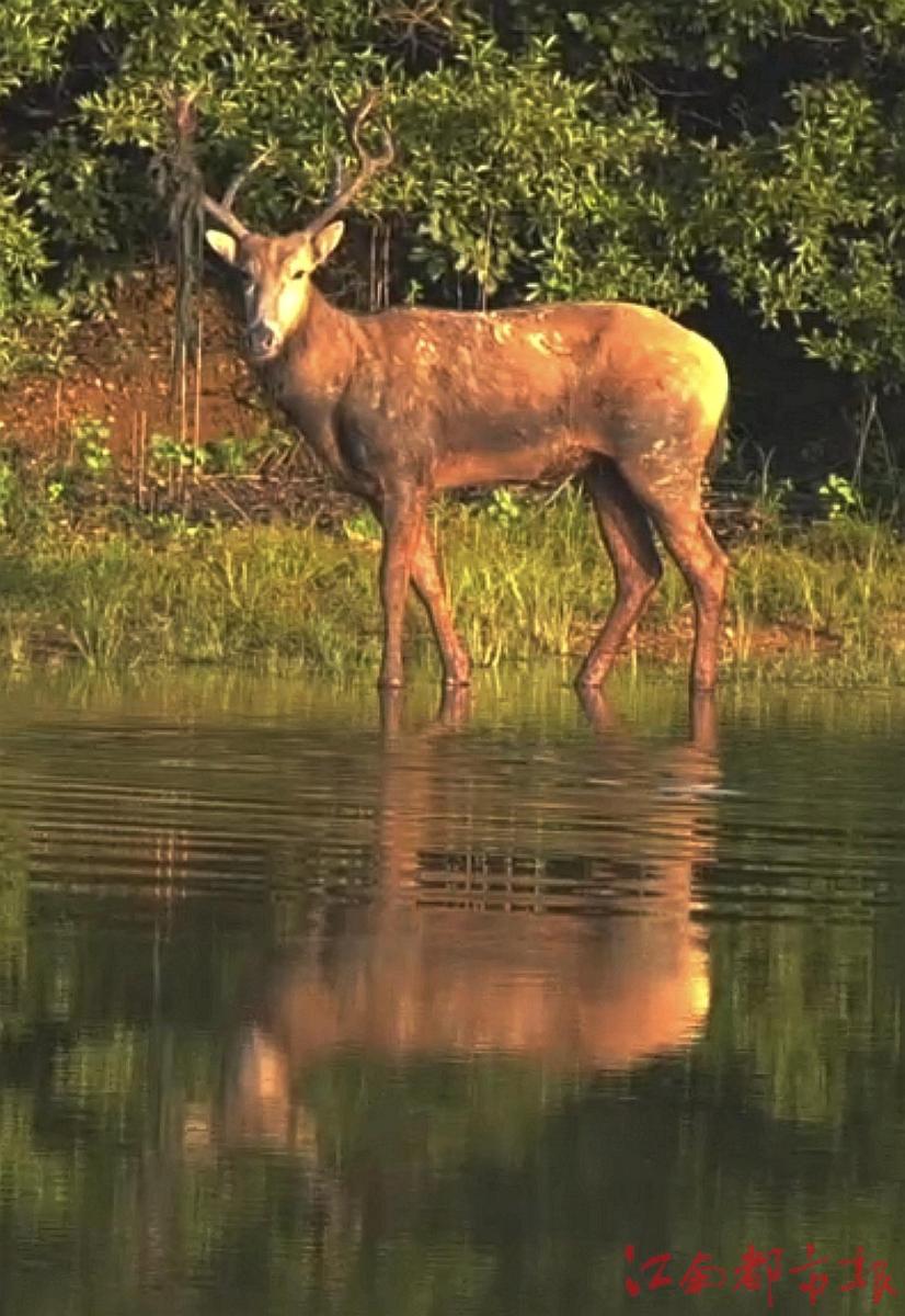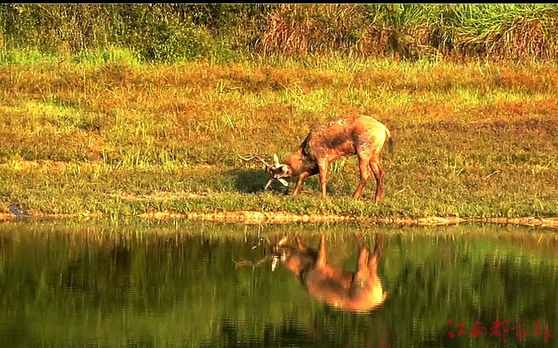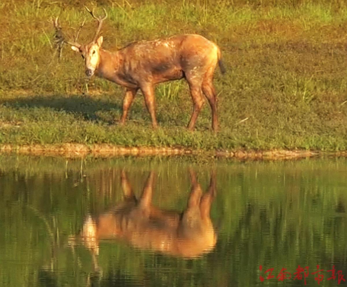 鄱陽縣一片小濕地里來了麋鹿