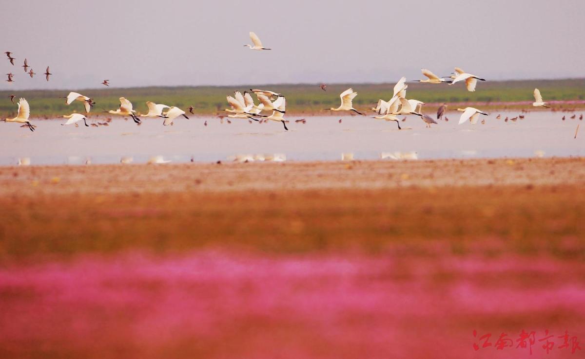 江南都市報(bào)訊 全媒體記者許南平攝影報(bào)道:花逢秋至盛,人愛水邊紅。10月31日,在都昌縣鄱陽湖大沔池水域和余干縣康山大堤附近裸露的濕地草洲上,大量蓼子花在湖灘上競相開放,形成一大片花的“海洋”,與湖水交相輝映。魚兒在水中暢游,候鳥在這里嬉戲,宛如一幅美麗的湖光畫卷,盡顯鄱陽湖濕地生態(tài)之美。蓼子花,又名辣柳草、蓼子草、水蓼等。為蓼科,蓼屬,一年生或多年生草本植物。穗狀花序或頭狀花序,中國大部分地區(qū)均有分布。蓼子花適合生長于近水邊陰濕處、河灘、水溝邊、山谷濕地,海拔50~3500米處?;ㄆ?~9月,果期6~10月。而鄱陽湖受秋季枯水期影響,湖區(qū)大面積的湖底和草灘露出,為蓼子花開提供了條件。因此,每年的十一月份開始進(jìn)入盛花期。