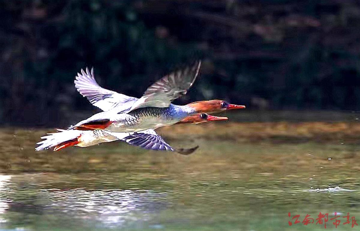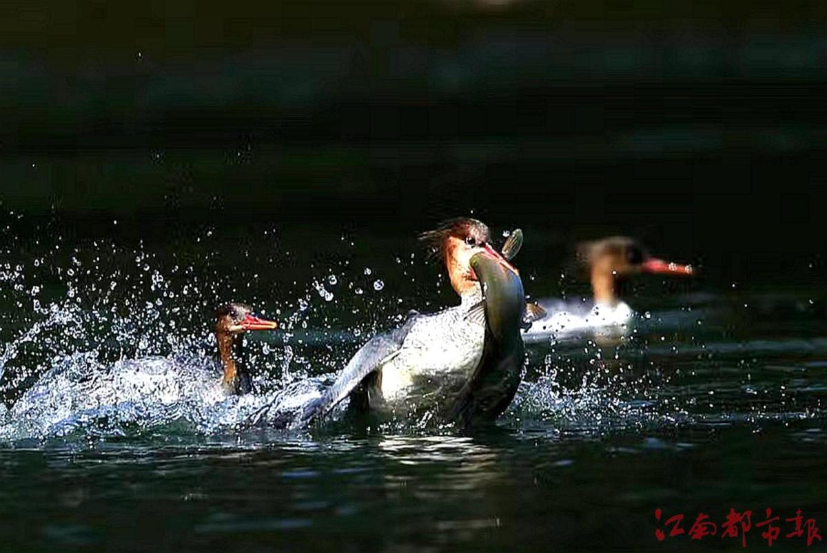 江南都市報訊 全媒體記者許南平攝影報道:11月26日,記者隨省野生動物保護(hù)協(xié)會志愿者一起,在鷹潭龍虎山風(fēng)景區(qū)拍攝“鳥中大熊貓”中華秋沙鴨。據(jù)悉,10月21日,第一批中華秋沙鴨來到這里,這已經(jīng)是中華秋沙鴨第17年飛抵龍虎山棲息越冬。龍虎山景區(qū)護(hù)林員肖冬樣告訴記者,目前,中華秋沙鴨越冬‘部隊’已經(jīng)陸續(xù)抵達(dá)。他和同事們會加強巡護(hù)看護(hù),記錄今年越冬中華秋沙鴨的數(shù)量、雌雄比例等信息。中華秋沙鴨是國家一級保護(hù)動物,被稱為“鳥中大熊貓”。每年3月末、4月初,中華秋沙鴨飛回北方,度過半年多的繁殖期后,于10月底南遷,在我國南方越冬,江西、湖南等地有較大種群數(shù)量分布。據(jù)了解,為了讓中華秋沙鴨有更好的越冬環(huán)境,龍虎山景區(qū)持續(xù)加大生態(tài)環(huán)境保護(hù)力度,于2008年初劃定1800公頃的保護(hù)區(qū),瀘溪河龍虎山景區(qū)段常年禁止捕魚。“中華秋沙鴨對棲息地生態(tài)環(huán)境要求很高,每年來此越冬的中華秋沙鴨數(shù)量穩(wěn)定在80只左右,最多時可達(dá)上百只。”肖冬樣介紹說,龍虎山景區(qū)已成中華秋沙鴨的主要越冬地之一。