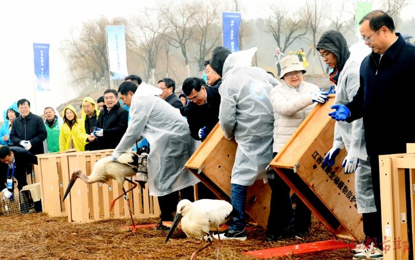 江南都市報訊 全媒體記者許南平攝影報道:1月10日,記者從省林業(yè)局獲悉,第三屆鄱陽湖國際觀鳥季“鶴舞鄱湖·人與自然和諧共生”萬人簽名暨上饒分會場活動在鄱陽湖贛劇院正式啟動?;顒悠陂g,大家共同參觀了“鶴舞鄱湖”攝影展和林產(chǎn)品展銷會,并前往鄱陽湖國家濕地公園參加救護候鳥放飛儀式暨高空觀鳥活動。當天,包括來自東北相關部門委托放飛的共計25只經(jīng)過專業(yè)人員救治、飼養(yǎng)已達到放歸野外標準的東方白鸛、白天鵝、鴻雁等國家級野生保護的候鳥被集中放飛。據(jù)了解,鄱陽湖作為中國最大的淡水湖,是亞洲最大的候鳥越冬棲息地,每年吸引60萬-70萬只候鳥在此越冬,記錄鳥類460余種,其中白鶴占全球種群數(shù)量的95%以上,是名副其實的“白鶴王國”“候鳥天堂”。良好的生態(tài)和種類豐富的候鳥吸引了眾多的游客前來觀鳥打卡。