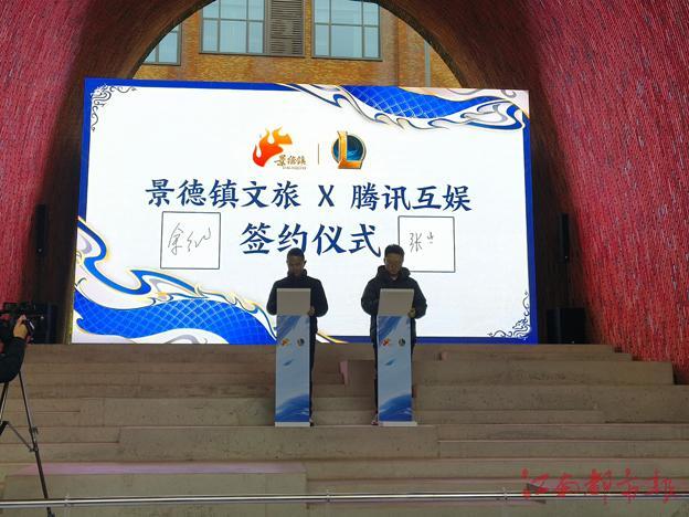 江南都市報訊 全媒體記者余文斌攝影報道:2月23日上午,“景德鎮(zhèn)文旅X騰訊互動娛樂數(shù)字文創(chuàng)生態(tài)計劃”發(fā)布會暨“龍韻瓷華 聯(lián)盟雅集”英雄聯(lián)盟跨界藝術(shù)展啟動儀式在景德鎮(zhèn)御窯博物館召開。景德鎮(zhèn)市文旅局與騰訊互動娛樂品牌與數(shù)字生態(tài)部簽約,標志著未來雙方將在線下活動、文化出海、瓷器文化弘揚方面,共同展開合作。