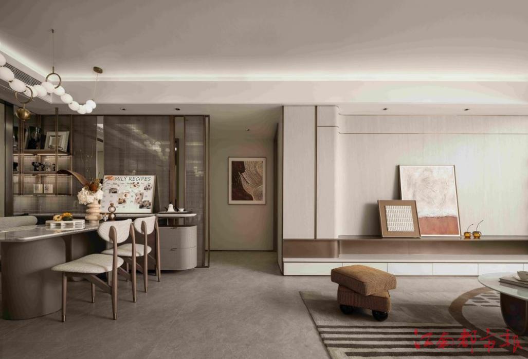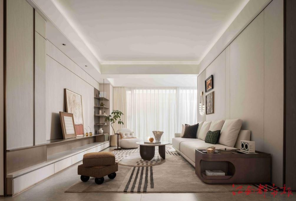走進(jìn)110㎡的客廳,橫向三開間、南向整體約10.3m面寬的設(shè)計(jì),瞬間將陽(yáng)光與清風(fēng)引入室內(nèi)。兩房朝南,一房朝北,功能分區(qū)明確,流線布局合理,每一處都彰顯著對(duì)生活的細(xì)致考量。玄關(guān)處的1.5㎡儲(chǔ)藏間,堪稱“空間魔法盒”。它可以是裝滿回憶的“時(shí)光寶盒”,收藏著孩子成長(zhǎng)的紀(jì)念品、自己青春的印記;也能變身解決生活雜物的“百寶箱”,老媽的菜籃子、老爸的釣魚竿、老婆的閑置物品、孩子的玩具都能各得其所;甚至還能成為專屬的私享愛好空間,女主人的衣帽間、男主人的酒窖、孩子的琴房,在這里都能實(shí)現(xiàn)。