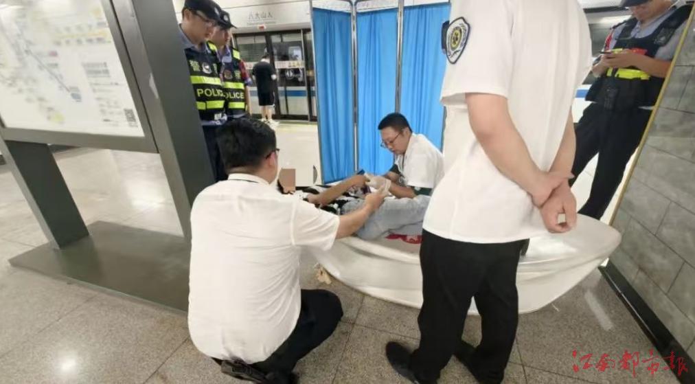 江南都市報訊 全媒體記者章娜、實習生肖輝艷、胡汕攝影報道:7月14日7時50分,正值早高峰時段,南昌地鐵3號線八大山人站的平靜被一陣急促的呼救聲打破。工作人員立即將暈倒的男孩抱出車廂,在站臺搭建了臨時救護空間,在寬敞的空間男孩逐漸恢復意識,被送往醫(yī)院進一步救治。