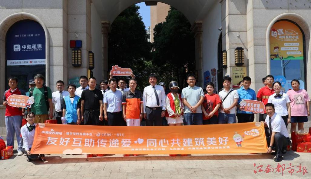 為進一步構(gòu)建騎手友好互助社區(qū),切實關(guān)懷新就業(yè)群體,2025年7月30日,九洲街道在西湖區(qū)委社會工作部的領(lǐng)導(dǎo)下,聯(lián)合中海物業(yè)南昌公司黨支部,在中海朝陽郡?鉑宮小區(qū)隆重舉行了騎手友好共建服務(wù)活動啟動儀式。西湖區(qū)委社會工作部九洲街道及中海物業(yè)南昌公司黨支部領(lǐng)導(dǎo)、轄區(qū)騎手及戶外勞動者代表共計百余人齊聚現(xiàn)場。區(qū)委社會工作部精心準備了防暑降溫禮包,為到場的新就業(yè)群體代表發(fā)放了包含涼茶、綠豆、銀耳等夏日物資,傳遞了夏日別樣“清涼”。同時,街道與物業(yè)共同提供的夏日清涼愛心飲品柜也正式投入使用,當天累計發(fā)放物資500余件,以“看得見、摸得著”的暖心舉措傳遞城市溫度,讓高溫下的勞動者真切感受到社會各界的貼心關(guān)愛。