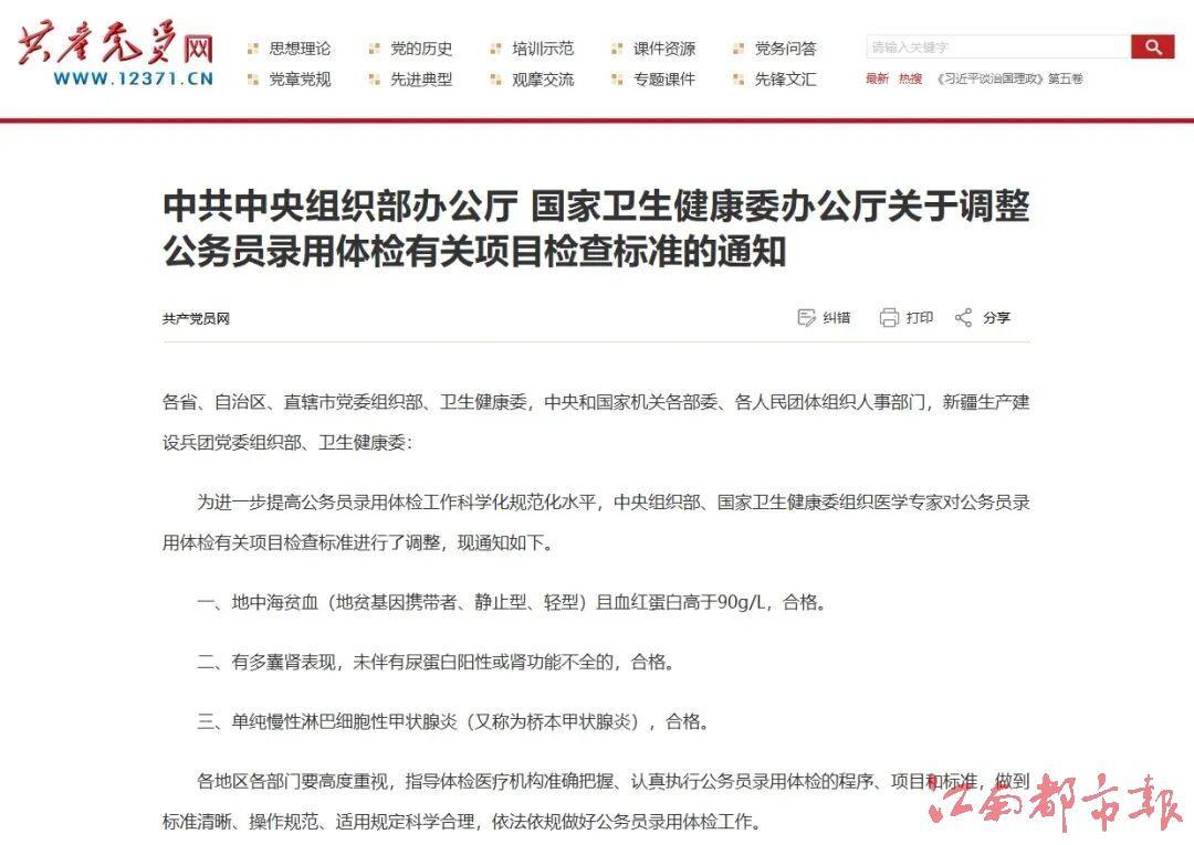 近日,中共中央組織部辦公廳、國家衛(wèi)生健康委辦公廳發(fā)布《關(guān)于調(diào)整公務員錄用體檢有關(guān)項目檢查標準的通知》。(此前報道:公務員錄用體檢有關(guān)項目檢查標準調(diào)整)細看標準,三項調(diào)整看似細微,實則如春風化雨,既彰顯了制度設(shè)計的與時俱進,更體現(xiàn)了國家對人才價值的重新定義——不唯“健康完美”,但求“人盡其才”!