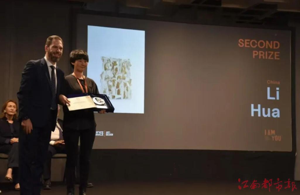 佛羅倫薩雙年展藝術(shù)總監(jiān)CELONA JACOPO為李婳頒發(fā)獎(jiǎng)?wù)录白C書
