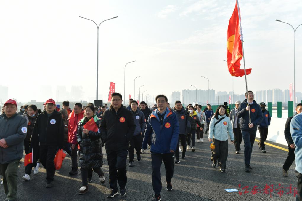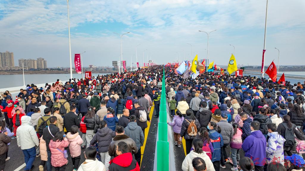 江南都市報訊 全媒體記者許南平攝影報道:1月3日上午9時,南昌市在隆興大橋舉行了“愛我英雄城 健步隆興橋”活動,吸引了221348名市民參與。先進人物、道德模范、橋梁建設(shè)者代表、媒體代表、網(wǎng)絡(luò)名人、企業(yè)代表、市民代表等共同為此次活動發(fā)令。隆興大橋于2022年11月開工建設(shè),2025年9月主橋全部合龍,在結(jié)構(gòu)設(shè)計、工藝創(chuàng)新、材料應(yīng)用上,創(chuàng)造了六項“世界之最”。“愛我英雄城 健步隆興橋”活動設(shè)南線與西線兩條線路,分別從南昌高新區(qū)與南昌經(jīng)開區(qū)出發(fā),各約12公里,現(xiàn)場設(shè)有市集、表演及抽獎環(huán)節(jié)。